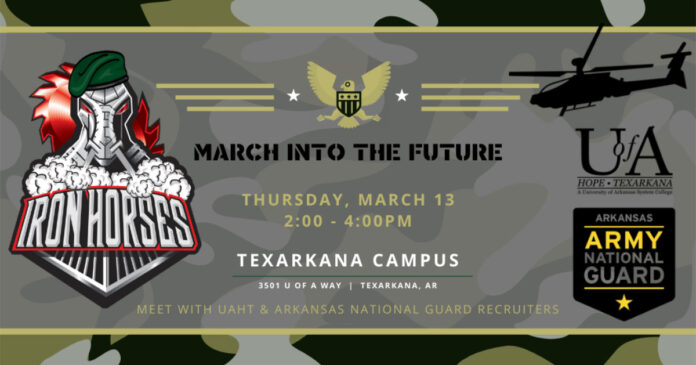 Arkansas NewsNewsEducation Army National Guard Recruitment Event at the UAHT Texarkana Campus on Thursday Featuring Blackhawk Helicopter By Press Release - March 12, 2025 SPONSOR Army National Guard recruiters will be on the UAHT Texarkana campus on Thursday, March 13, from 2 to 4 p.m. If you’ve ever considered joining the military or just want to see a Blackhawk helicopter up close, this is your chance!