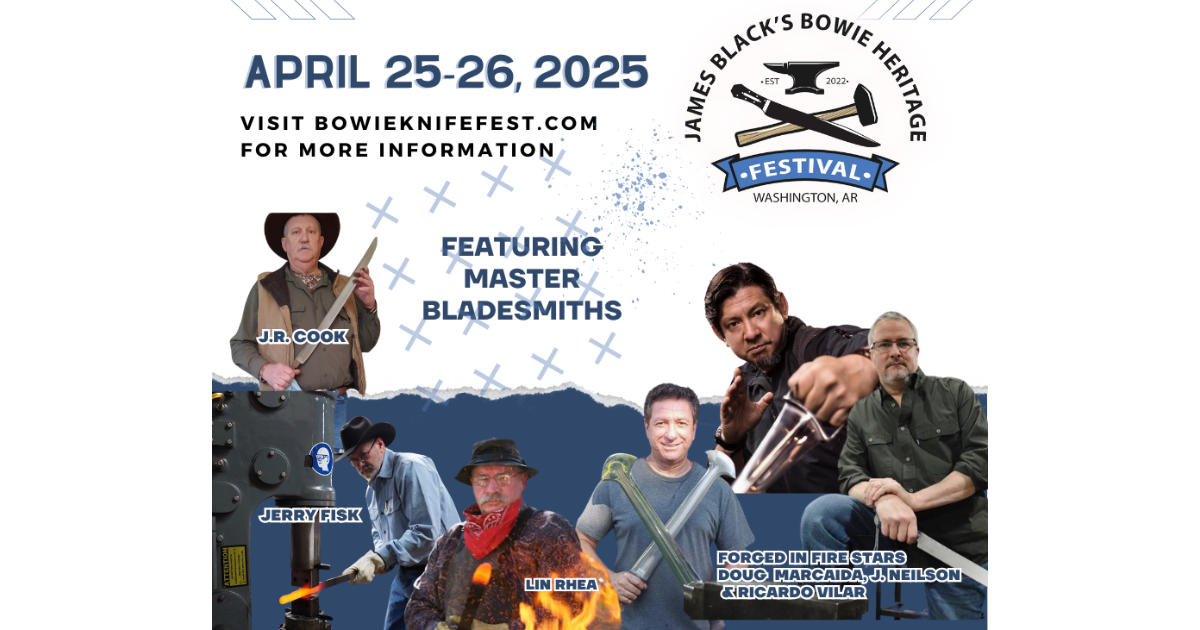 The City of Washington, Arkansas, in partnership with the University of Arkansas Hope-Texarkana Foundation and Historic Washington State Park, will host the 4th Annual James Black’s Bowie Heritage Festival on April 25-26, 2025, from 9:00 a.m. to 5:00 p.m. The festival will celebrate James Black, the bladesmith who forged the first Bowie Knife for Jim Bowie in Washington, and showcase a variety of Arkansas heritage crafts and trades.