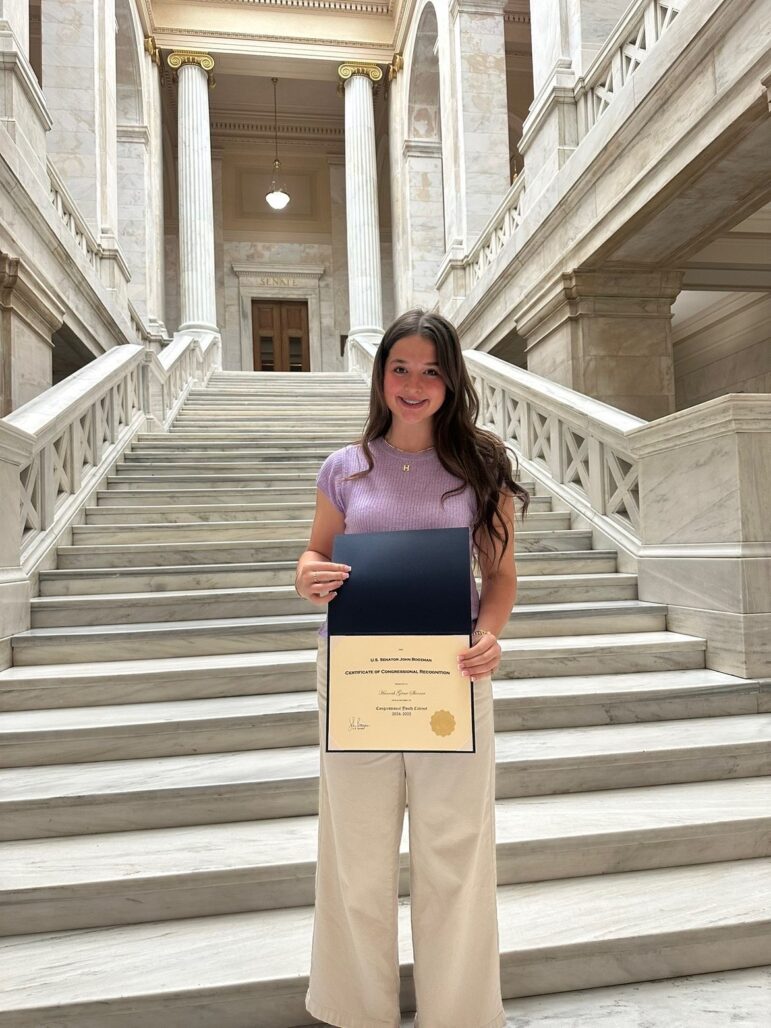 Despite her initial disinterest in school, Hannah has grown into one of the most studious and outspoken individuals on campus during her time at Arkansas High, reflecting her goals for a future career in politics. Hannah has had this dream for many years, and attending Arkansas Girls State only fueled her passion. Her ultimate goal is to work her way up and get a seat in the United States Senate for Arkansas. Hannah has already achieved a significant accomplishment in politics, having served as a 2024-2025 Arkansas Congressional Youth Cabinet member and collaborating on a bill with Senator John Boozman. Once Hannah graduates, her current plan is to study business with a focus in financial analytics next fall at the University of Arkansas in Fayetteville.