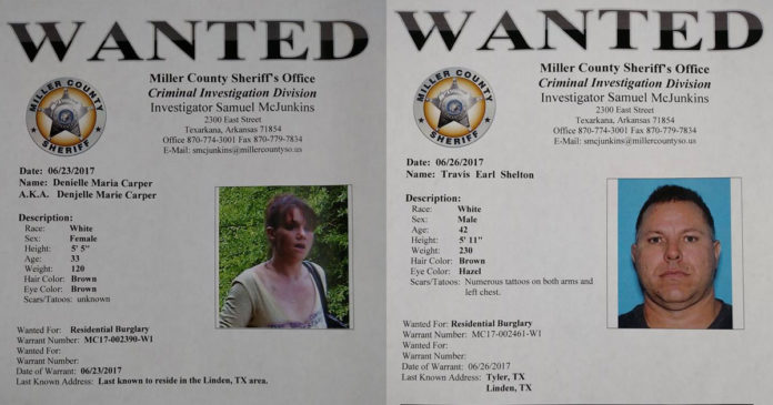 Miller County Deputies have identified Denielle Maria Carper and Travis Earl Shelton as two of the suspects captured by game camera during a residential burglary in Doddridge, Arkansas.