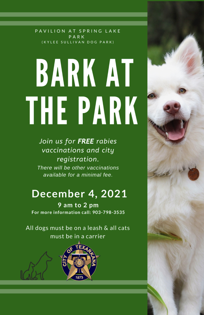 Animal Control Services for the City of Texarkana, Texas is hosting Bark at the Park this Saturday.