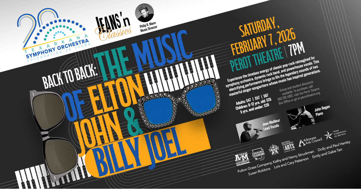 Crafted with care by the genre-blending virtuosos at Jeans ‘n Classics, Back to Back is more than a tribute—it’s a resurrection of the magic that made Elton and Billy household names. Their music isn’t just timeless—it’s alive, and on February 7, it’ll be pulsing through the walls of the Perot Theatre.