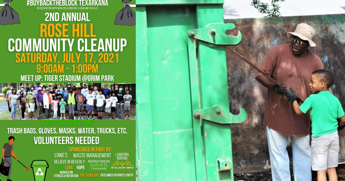 This year’s event will be held on Saturday, July 17, 2021, from 9:00am – 1:00pm. Meetup will be held at Tiger Stadium at Grim Park on W. 13th and Summerhill Rd. Volunteers will meet at the parking lot, pray, have words of encouragement, and commence to clean throughout the Rose Hill community. It is sponsored in part by Majestic Living, Inc. and VRALIAM Tech, LLC.