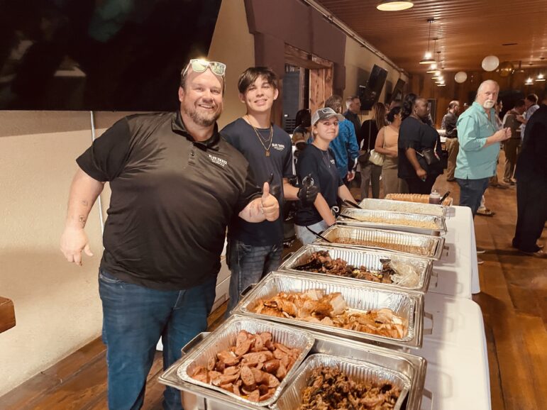 The crew from Blue Ember BBQ serving up prefectly prepared vittles.
