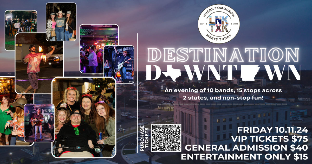 LNKTXK is thrilled to announce the return of our highly anticipated fall event, Destination Downtown, celebrating the vibrant heart of Texarkana! As dedicated supporters of Downtown Texarkana, they continue to elevate the event each year, and this year is no exception. LNKTXK is excited to expand their reach to even more businesses within the newly expanded Entertainment District, ensuring a bigger, better, and more inclusive celebration.