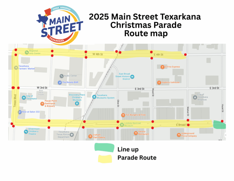 “The parade reflects the spirit, creativity, and community pride that make Texarkana special,” added McDowell. “We are looking forward to the amazing floats we will see!”
