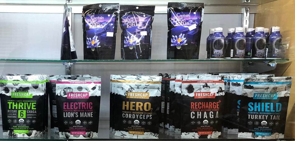Mushrooms – Well-known, have been used in Chinese medicine for thousands of years. They are good for a variety of things: some for the immune system, some for clarity and focus of the mind, some for energy and stamina and also have we have one that’s an overall combination one with collagen that is for your joints and flexibility.