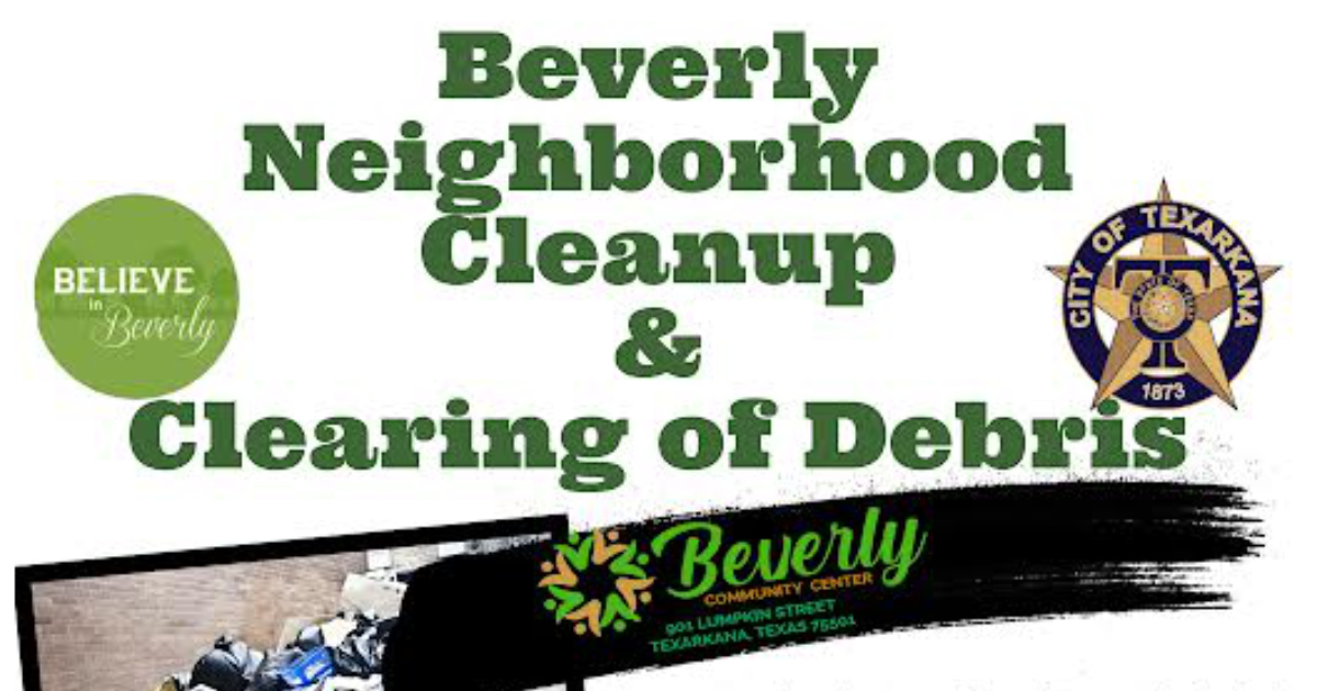 A community clean-up has been scheduled for the Beverly neighborhood to assist residents with clearing storm debris from their properties. Clean-ups will be held Friday and Saturday, July 19th and 20th, with volunteers meeting at 901 Lumpkin Street, Texarkana, TX, starting at 8:00 a.m.