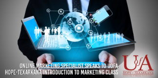 Online marketing specialist speaks to UofA Hope-Texarkana Introduction to Marketing class