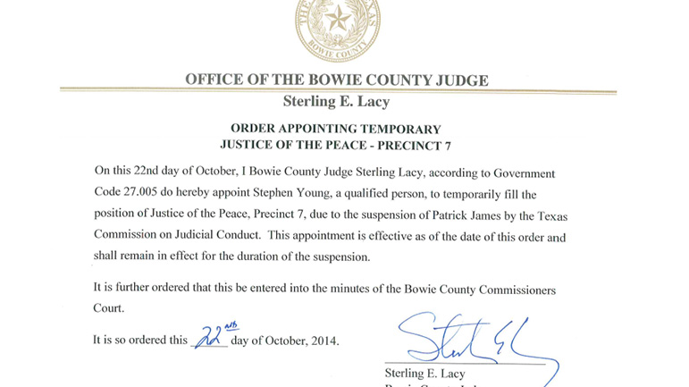 Replacement for Indicted Justice of the Peace on Bowie County Commissioner’s...