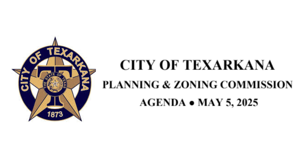 The City of Texarkana’s Planning & Zoning Commission is scheduled to hold its regular meeting on May 5, 2025, at 6:00 PM in the Council Chambers located at 220 Texas Blvd., Texarkana, TX. The meeting will be led by Chairperson Gene Joyce III, along with Vice Chairperson Dianna Patterson Kinsey and Commissioners James Larkins, Wanda Northam, Casey Boyette, Brad Bailey, and Lee Kernek. Alternate Commissioners Ross Sarine and Kory Crews will also be present.