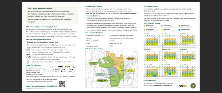 Waste Management of Texas, Inc. (WM) Hauling, in Texarkana has provided waste disposal services to residents, communities, businesses, and industries in Texarkana for many years. WM is enhancing the solid waste collection service by launching automated collection services across the City of Texarkana, Texas. The new automated service is intended to make residential waste collection more efficient, cleaner, and safer.