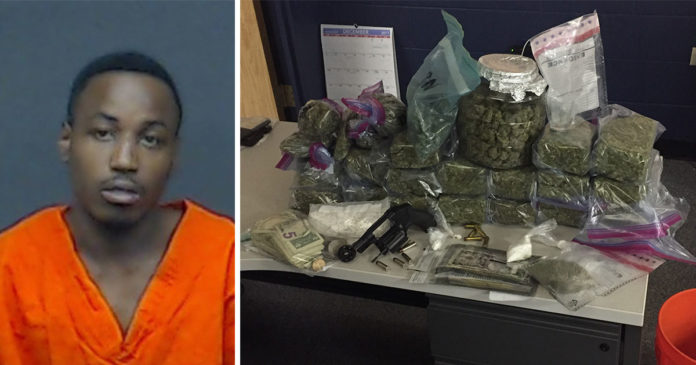 Inside the residence, they discovered 19.5 pounds of marijuana, 31 grams of cocaine, 1,238 Xanax pills, and 3 tablets of MDMA (commonly known as Ecstasy). Officers also seized an undisclosed amount of cash found hidden throughout the house and a loaded pistol.