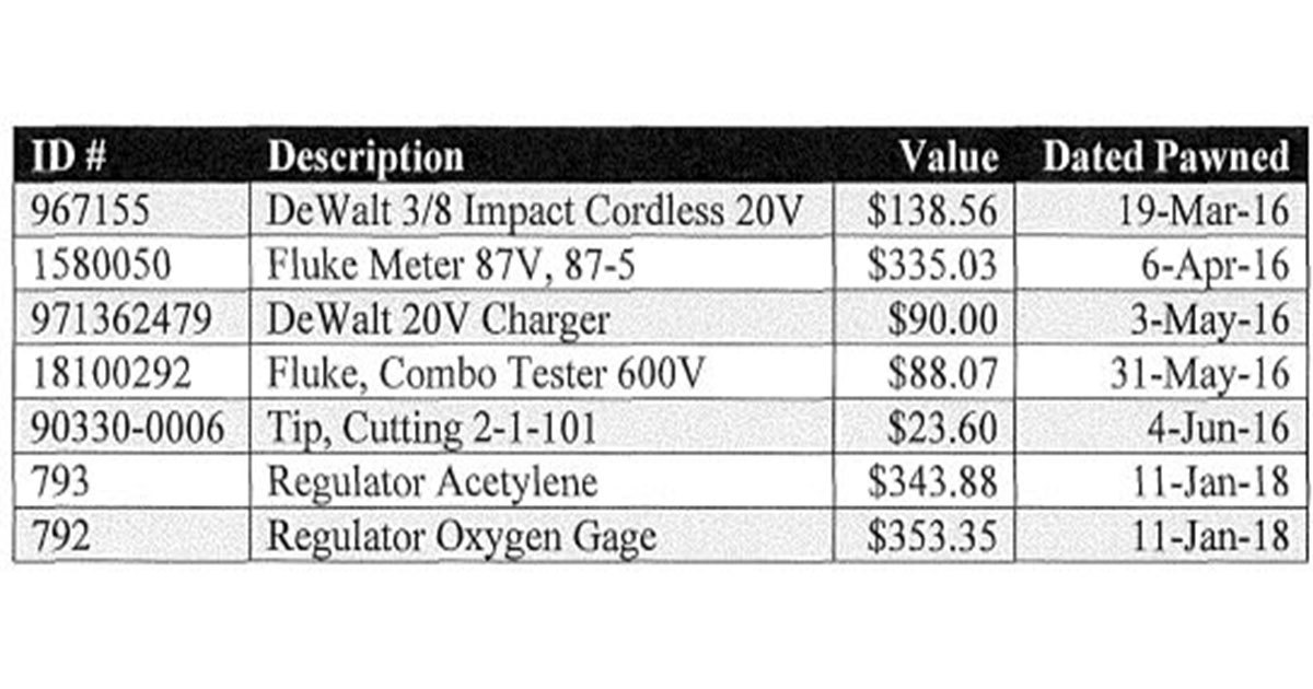 Court documents state that Morgan stole tools and other equipment worth $6,968.76 which he sold at pawn shops beginning in 2015 and ending in the fall of 2018. Morgan has agreed to pay that amount in restitution to the U.S. government. Morgan’s plea documents include a table with examples of the equipment he stole from RRAD.