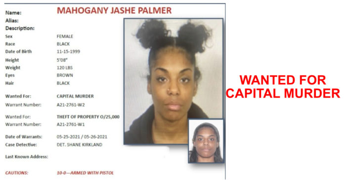 Regarding the deceased forty-year-old male (Earnest Jackson) at the Fox Creek Apartments yesterday, The Texarkana Arkansas Police Department now has two outstanding felony warrants for Mahogany Jashe Palmer twenty-two-year-old female from Little Rock, Arkansas. The first charge is for Capital Murder, and the second charge is for Theft of Property over $25,000. We do consider Ms. Palmer to be armed and dangerous.