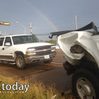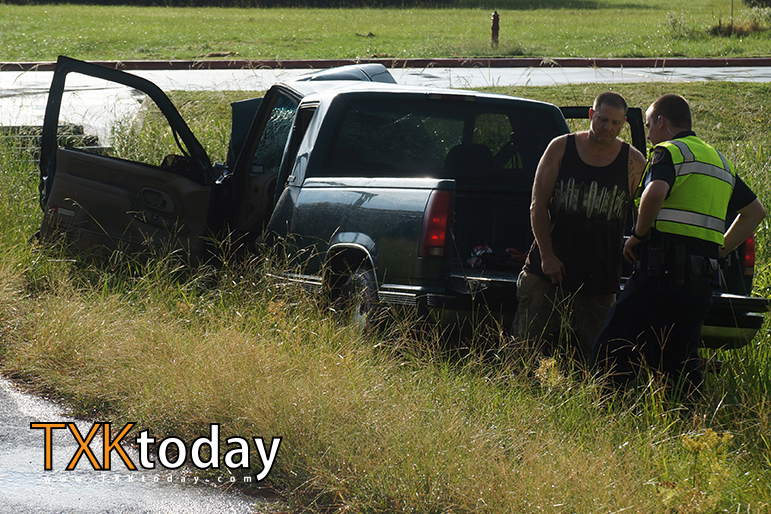 The driver of the truck was driving south on Highway 59 when he was approaching the red light at Highway 59 and Leopard Drive. The driver did not stop and struck the City’s white truck causing significant damage to the back right side. The dark colored truck sustained significant front end damage. Texarkana, Texas Police and Fire Departments responded immediately. The jaws of life had to be used to release the driver. A mason jar was visible with a clear substance, which witnesses stated was moonshine.