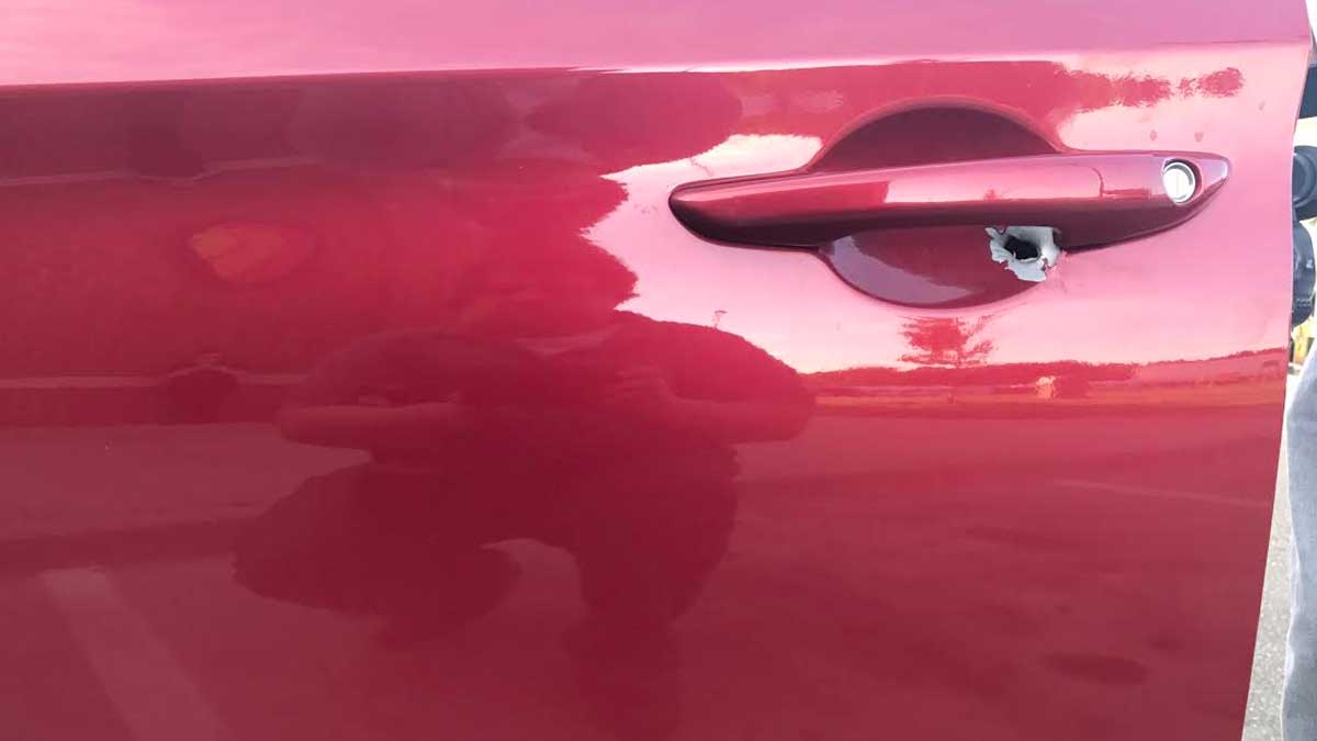 The Hyundai driver said the Kia then pulled up alongside him, lowered his window and fired a shot from a black revolver. The Hyundai driver said he could see and hear the gun being fired. The bullet passed through the Hyundai’s driver’s side door just below the handle and grazed his left arm. When the Hyundai driver got out of his car, the bullet fell out of his shirt and was collected by deputies.