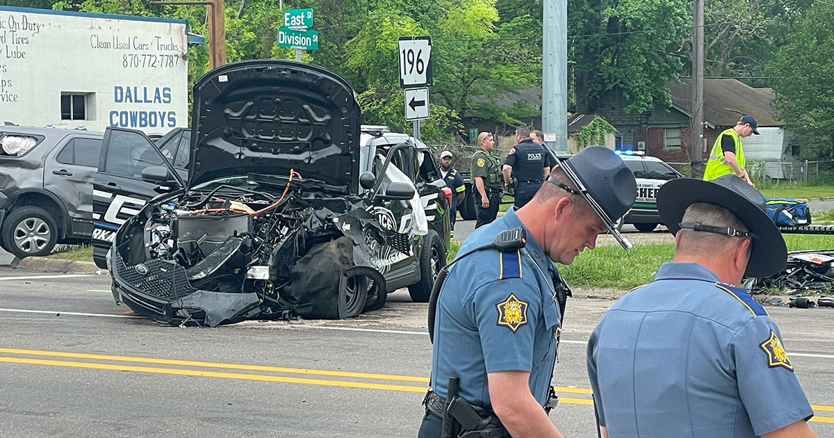 The TAPD officer was traveling westbound on Division and the Miller County unit was responding northbound on East Street when they collided in the intersection. A third vehicle was hit by one of the patrol vehicles.