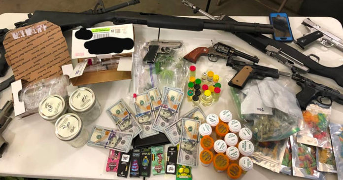 Investigator George Huggins, Narcotics Investigator Westin Fannin, and Captain Chris Taillon began a search of the home. Inside of the home Officers located a large amount of THC edibles that are made to resemble gummy bears and other candies, a large amount of marijuana, a large amount of un-prescribed Testosterone, and 5 marijuana plants being grown in a room that had been turned into a grow room. Also located in the home, with the narcotics, were numerous firearms and a large amount of US Currency.
