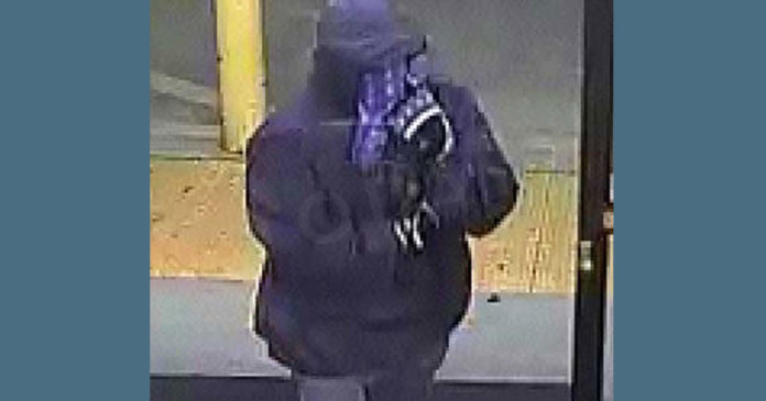 The suspect was described as a black male with a bandanna over his face wearing a blue jacket.