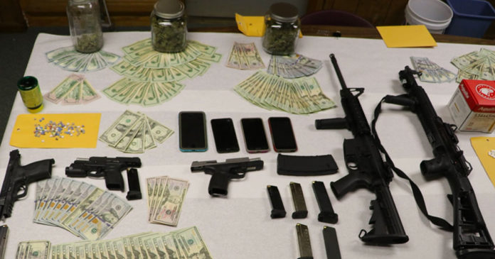 The vehicle was located a short distance away and stopped. Officers with the Atlanta Police Department with the assistance of the Texas Department of Public Safety identified the subjects inside the vehicle and confirmed that they were the ones responsible for the aggravated robbery that had just occurred and arrests were made. Officers located a large amount of marihuana and Ecstasy inside the vehicle along with property that was stolen during the commission of the robbery. Officers also recovered a considerable amount of money along with three pistols and two rifles, including the pistol that was used to commit the robbery, in the vehicle.