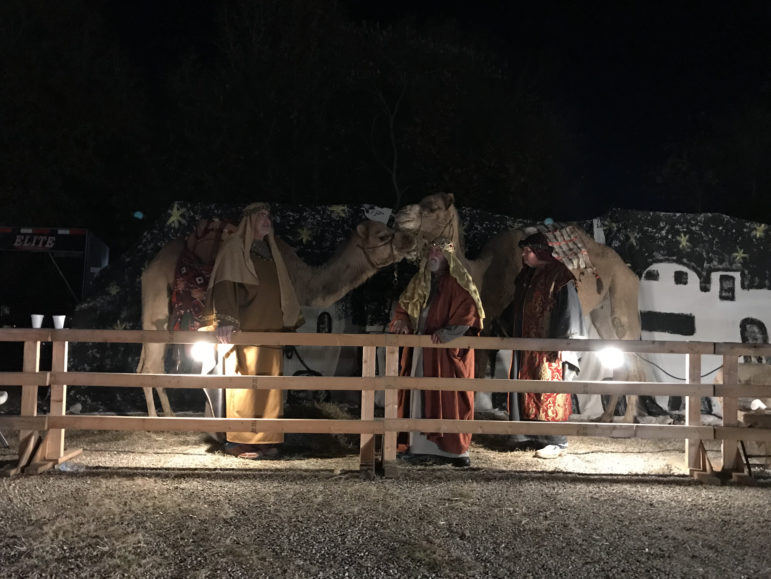 At First Assembly of God, located at 3401 W 7th St., guests are greeted by volunteers handing out complimentary hot chocolate beverages. As they begin the drive-through experience, they encounter a unique variety of animals and characters including angels, camels and donkeys.