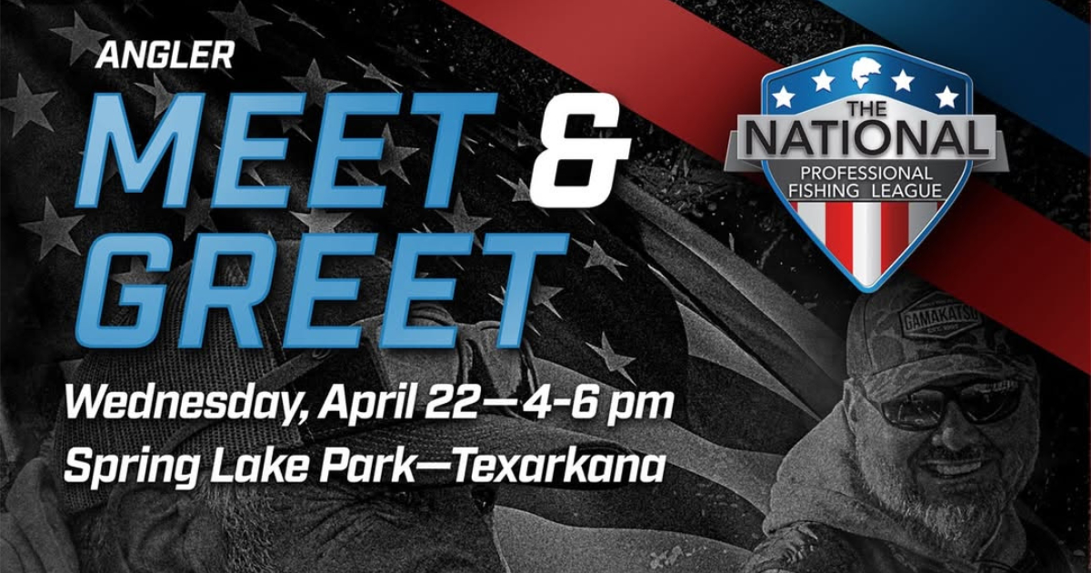 Fans and families are invited to a free Meet & Greet with NPFL pros at Spring Lake Park on Wednesday, April 22 from 4:00–6:00 p.m. Attendees can get autographs, ask questions, and spend time with some of professional fishing’s biggest names before the competition begins.