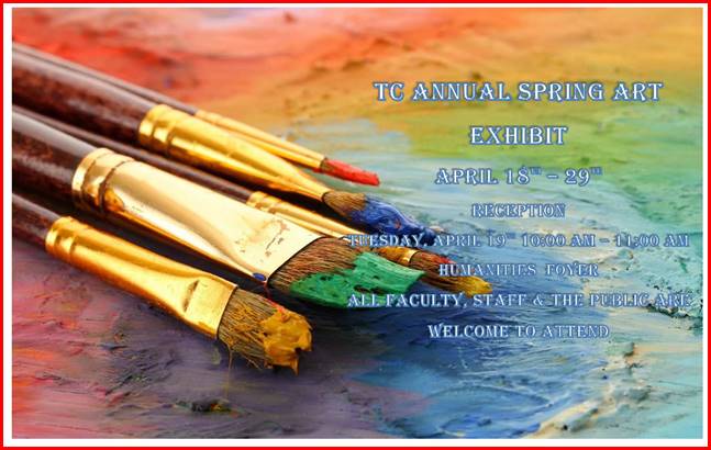 The Texarkana College Art Department invites you to their Annual Spring Student Art Exhibit and Reception, Tuesday, April 19th from 10 AM – 11 AM in the Humanities Building foyer. The art exhibit opened today for viewing by students, faculty, staff and the public. The display will remain open through April 29th.