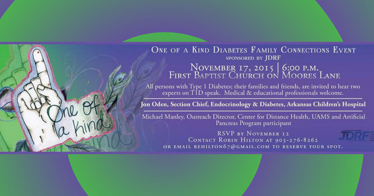 One of a Kind Diabetes Family Connections Event, sponsored by Juvenile Diabetes Research Foundation will be held at 6 p.m. at First Baptist Church – Texarkana, TX, tonight, Nov. 17th.