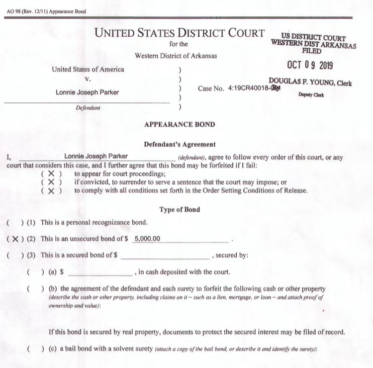 According to court documents the case has been scheduled for trial by jury on November 20, 2019. Federal public defender Alex Wynn has been appointed to represent Parker.