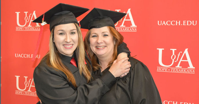 It’s not often that a mother and daughter attend college at the same time, let alone attend the same college and graduate in the same field of study. But being exceptional could easily describe Lynn Bolt, and her daughter Andie Bolt, who both graduated from the University of Arkansas Hope-Texarkana (UAHT) Licensed Practical Nursing (LPN) program on May 8.