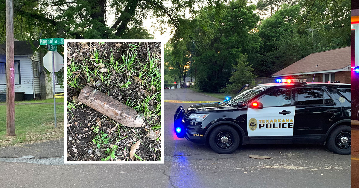 Texarkana, Texas Police have taped off 30th St. between Magnolia St. and Hazel St. after a man mowing discovered what appears to be tank round.