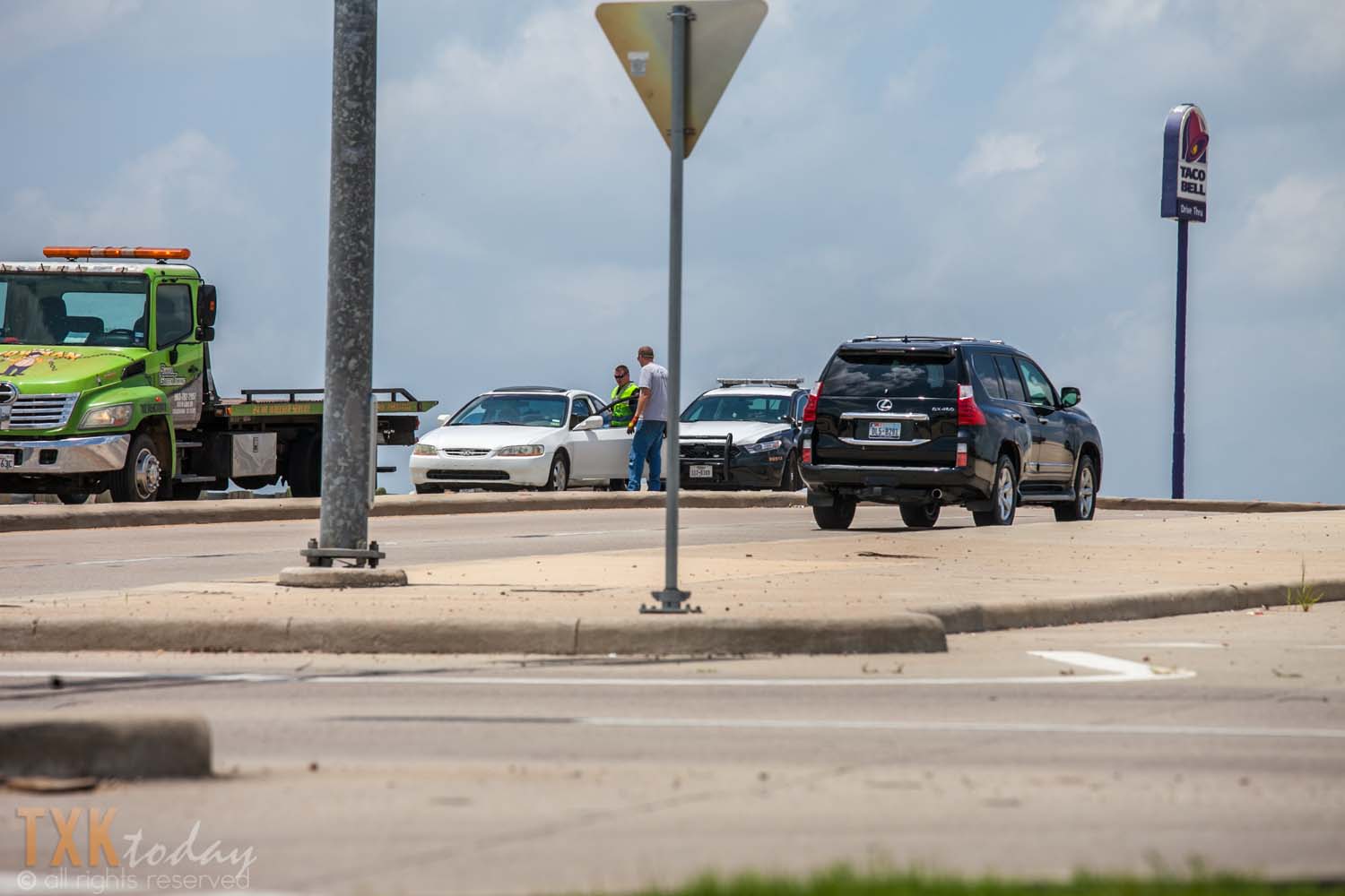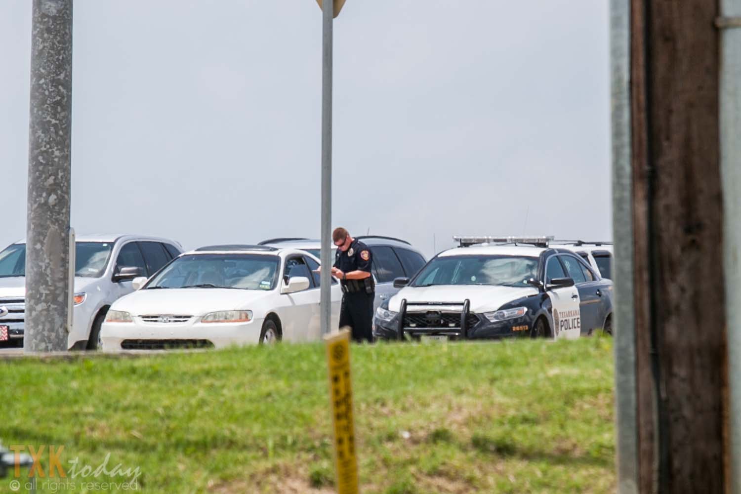TXK Today reader was behind the car when the driver jumped out. “He was prob 32 or so shorts and wife beater shirt smoking a cig had small amount of facial hair and cap. Prob 5 ft 7 215 lbs white male ran towards the mall”