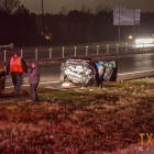 Two cars had a rear end accident in front of Flowers Bakery on I-49 last night sending one car spinning into the median and left the other badly damaged on the shoulder.