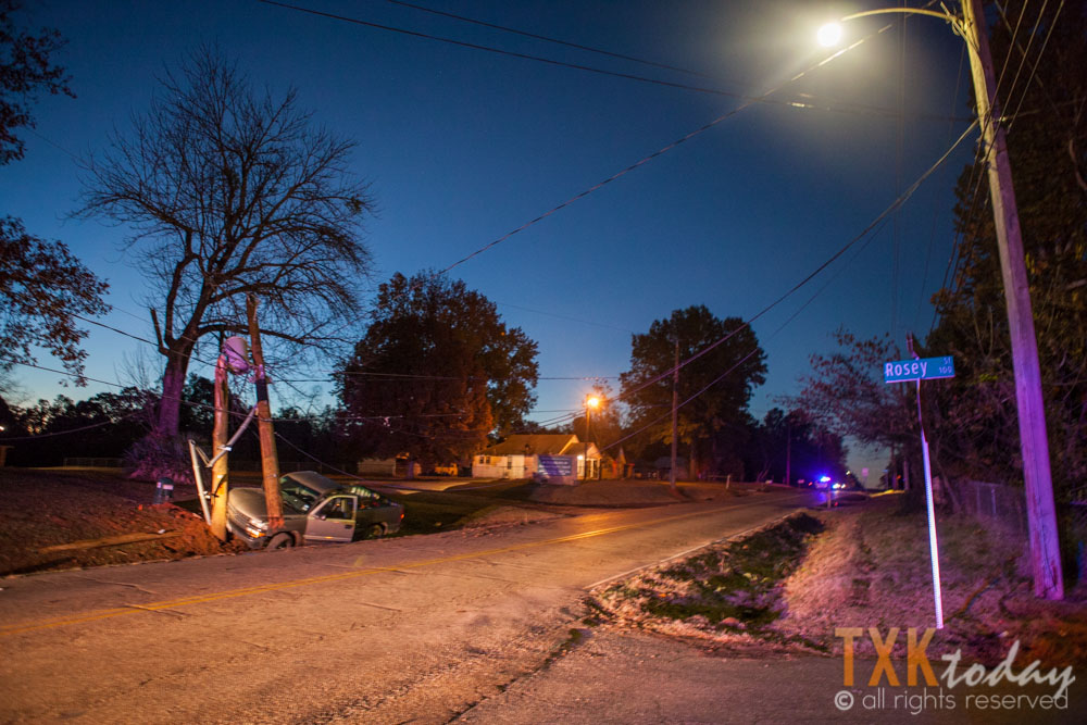 5:45 am Monday | A single vehicle accident took out a utility pole on South State Line Avenue near Rosey Street in Texarkana, Arkansas.