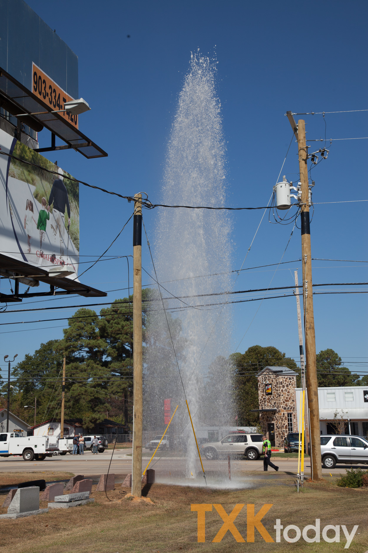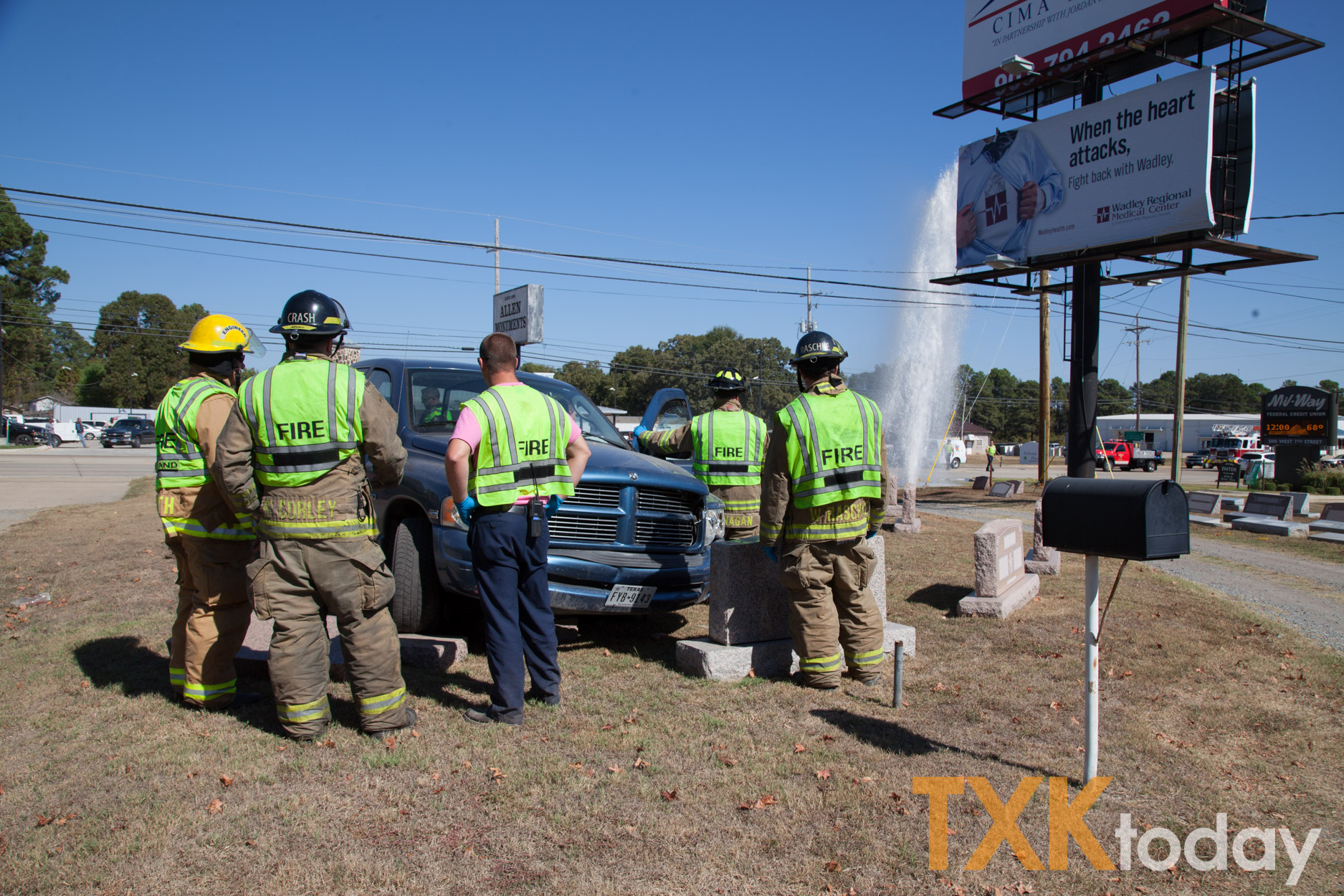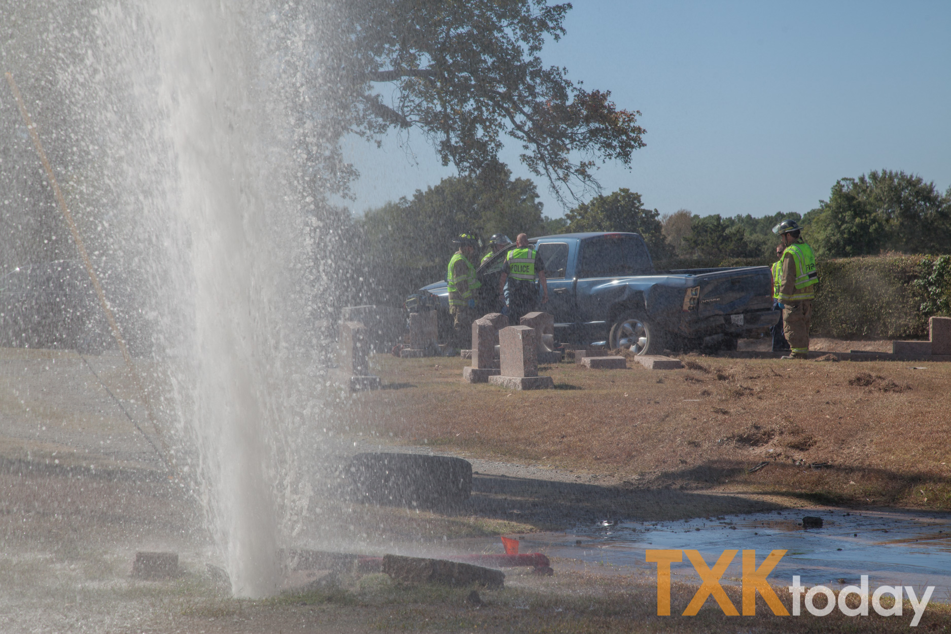 A two vehicle accident in the 5000 blockĀ of Highway 67 left a large geyser of water coming from a broken water line Monday.