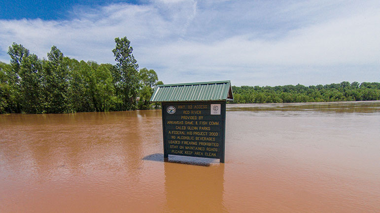 - 19.5 – Considerable backwater flooding will take place on Walnut Bayou at its confluence with the Red River to near Tom, Oklahoma.