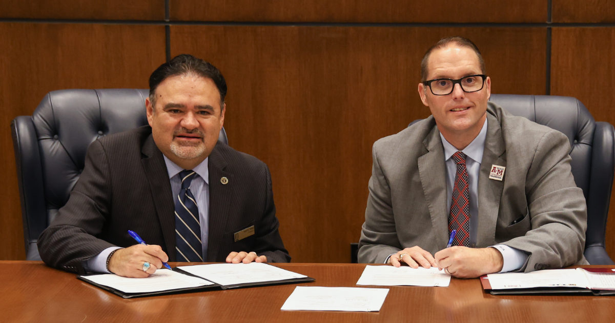 Officials from Texas A&M University- Texarkana and Tyler Junior College (TJC) recently gathered on the TJC campus to sign an articulation agreement strengthening the partnership between the two institutions and establishing clear pathways for degree completion for transfer students. The new agreement provides pathways through which TJC graduates can enroll in classes at the university to seamlessly continue working towards a bachelor’s degree in their chosen field. The two institutions also signed a partnership agreement, which allows full-time TJC employees to take classes at A&M-Texarkana at reduced costs.