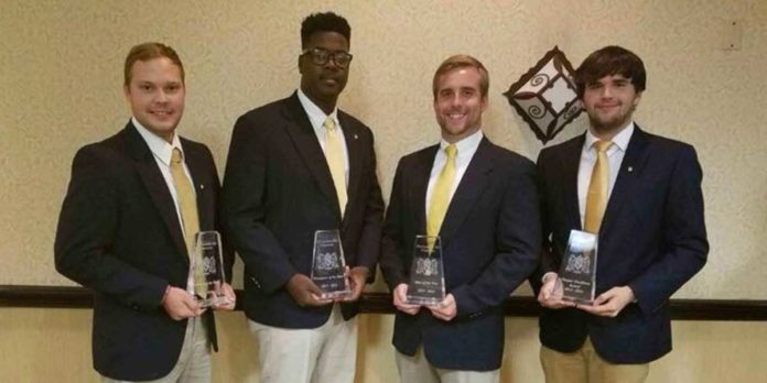Heath Coston of Texarkana, Texas, a 2016 A&M-Texarkana graduate, received the 2015-16 Man of the Year award from the national organization. Alex Claiborne of Marshall, Texas, was named Secretary of the Year. Jamauryon Pree of Texarkana, Texas, was named Treasurer of the Year.