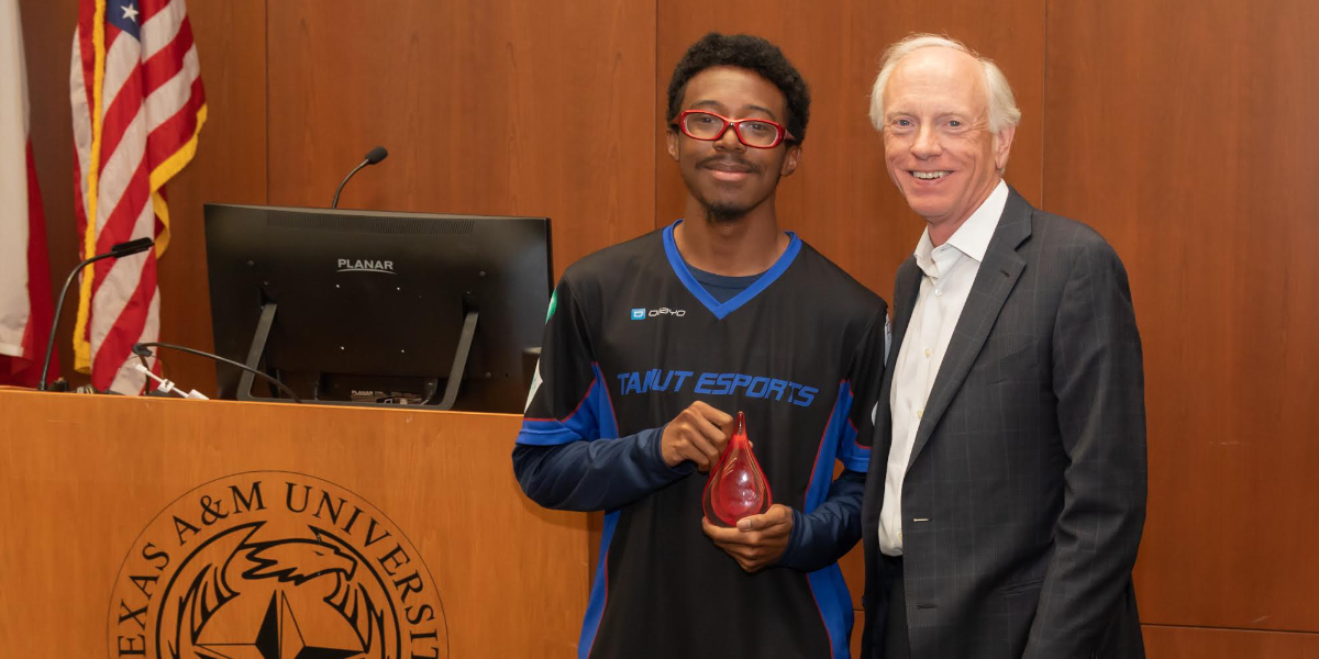 The 2022 Scott Bruner Award for Visionary Student Leadership was presented to Tobi Gullatt, for the leadership roles he assumes in multiple organizations on campus. Tobi is a senior kinesiology major from Texarkana, Texas who attended Liberty-Eylau High School. He is a student assistant for the Eagles soccer team, is active with the Student Government Association, and is a student worker in the Patterson Student Center. He is also active in weekly Diversity Group meetings held by the university’s Counseling Services office. One of the most notable examples of Tobi’s leadership came as he worked to create TAMUT Esports on campus. He is the founder and President of the group and has spent the past three years working with university officials and outside organizations to make the Esports program an active organization for A&M-Texarkana students.