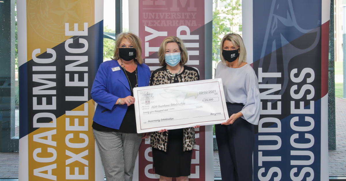 Texas A&M University-Texarkana received a $25,000 donation from an anonymous donor as a part of its anniversary scholarship initiative. The university, celebrating 50 years as an institution, 25 years as a member of The Texas A&M University System, and 10 years of breaking new ground, is working to raise a half million dollars in scholarship donations to celebrate a half century in higher education.
