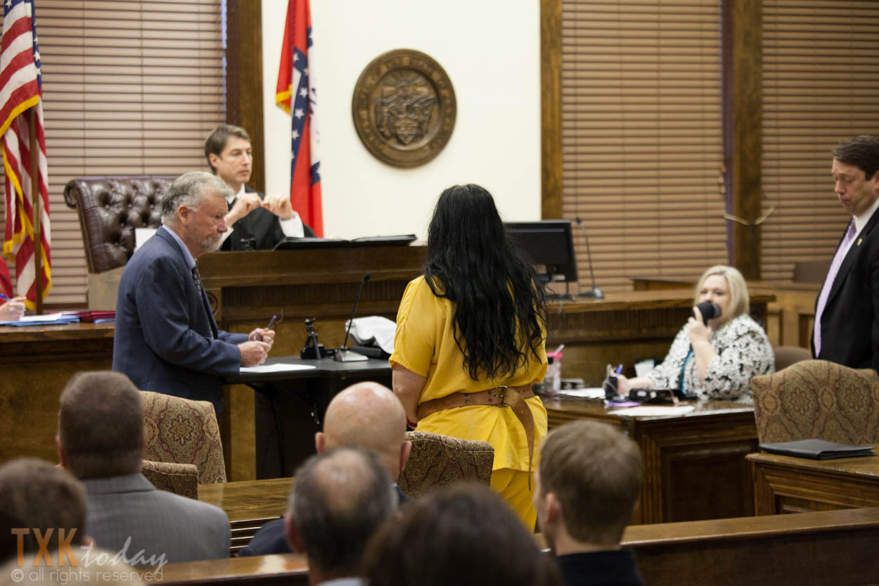 The woman accused of shooting and killing 17-year-old Caitlin Caskey Saturday night in Little River County made her initial appearance in an Ashdown, Ark. courtroom Tuesday morning.