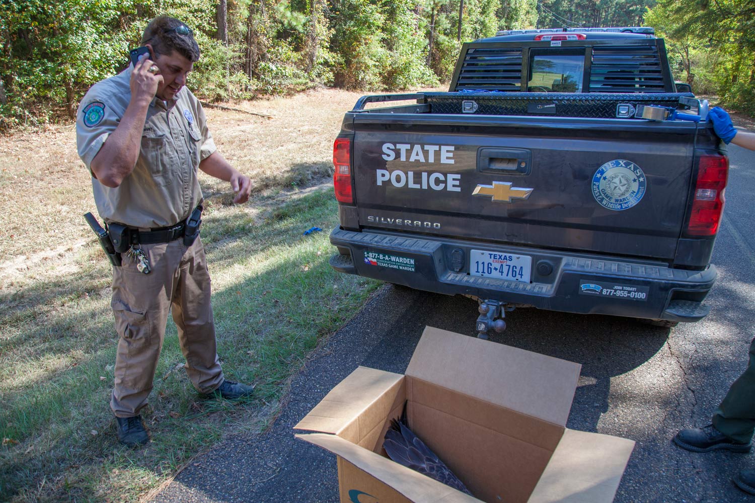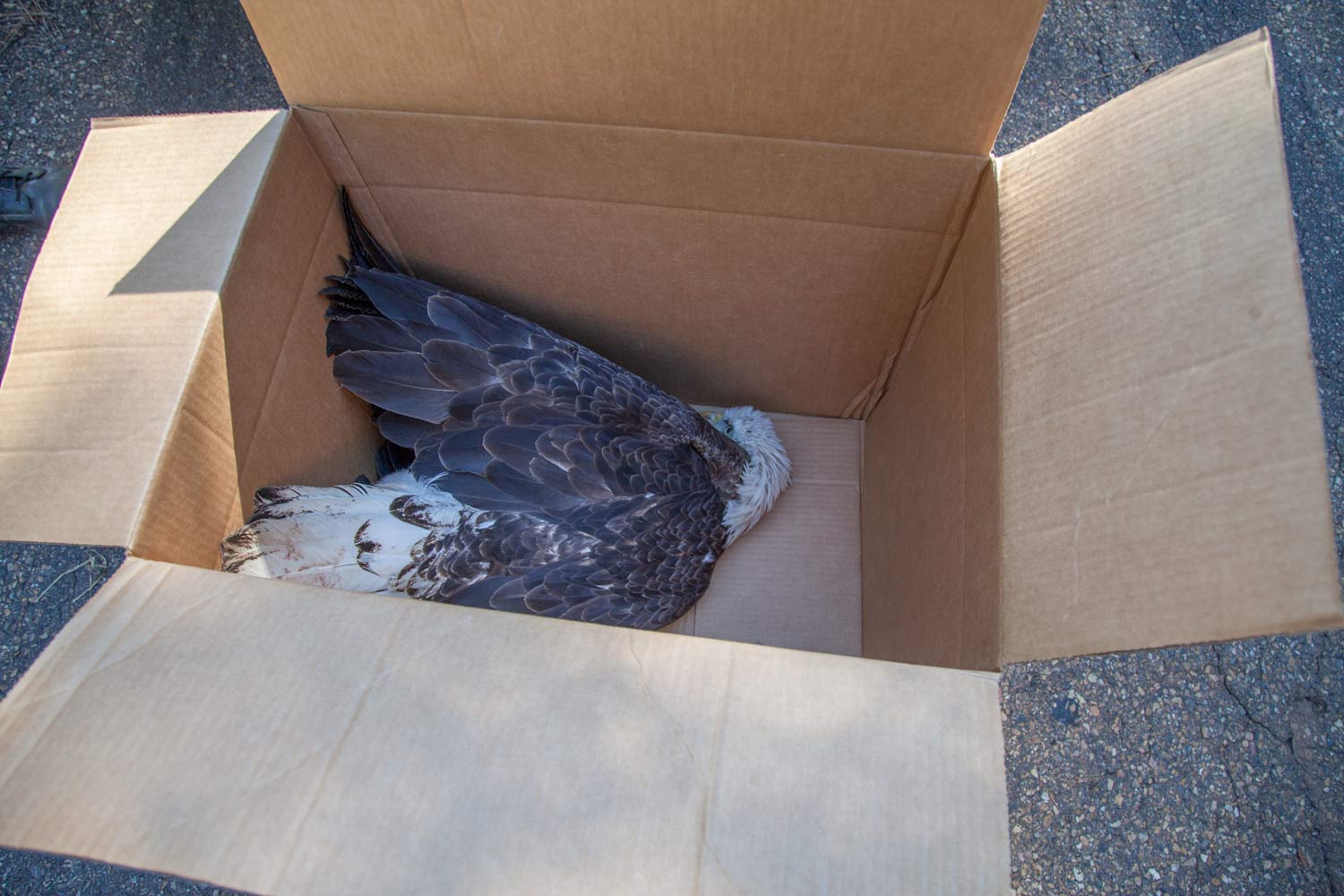 Hervey loaded the wounded bird into a cardboard box for transport to a veterinarian in Mt. Pleasant, Texas.