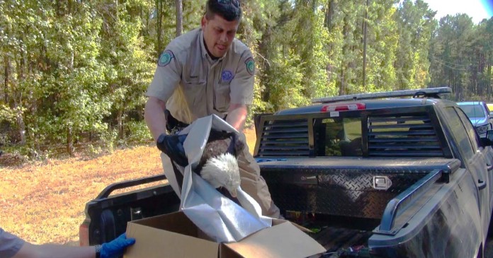 Texas Game Warden Shawn Hervey rescued a bald eagle with a possible gunshot wound to its wing Friday afternoon near Lake Wright Patman.