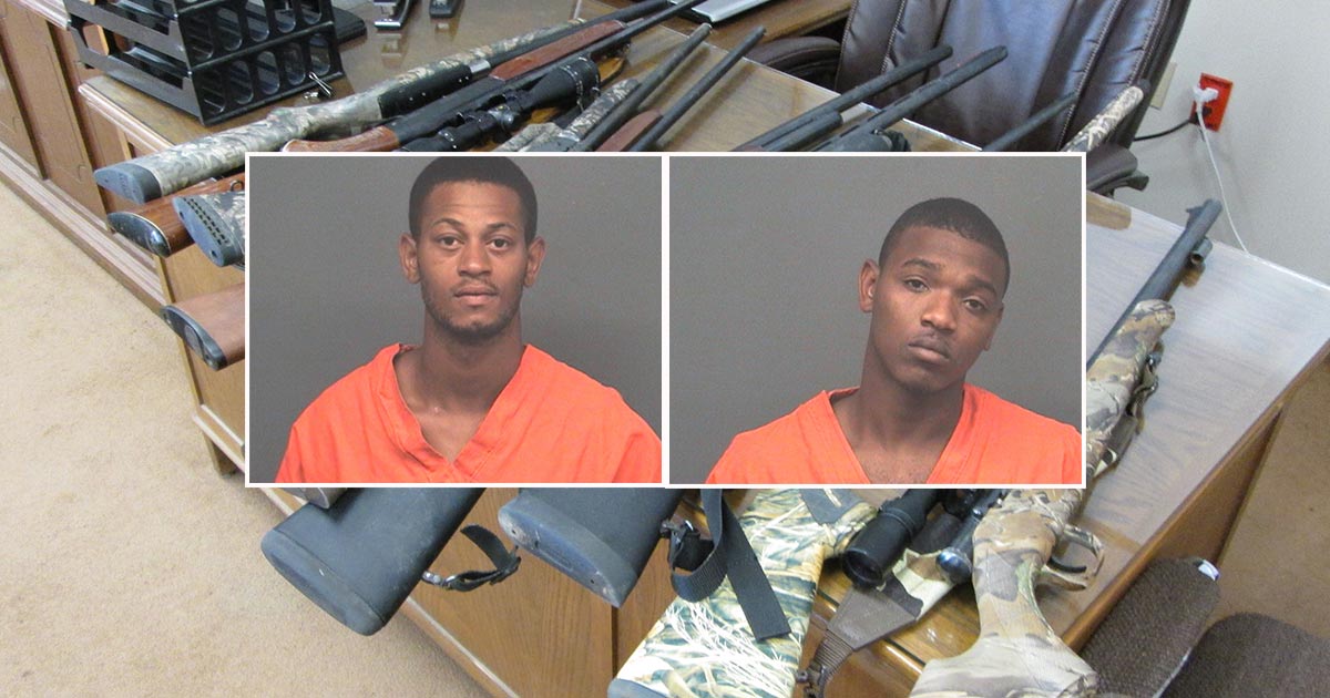 Bowie County Sheriff’s Office arrested two men involved in a home burglary Wednesday in Redwater in which the men stole multiple firearms from a home.