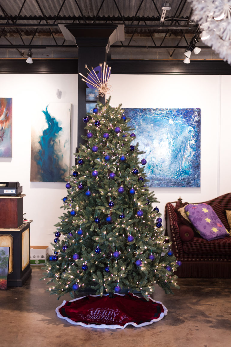 Joel and Sarah Wright handmade their tree topper, with paint brushes and a paint pallette.