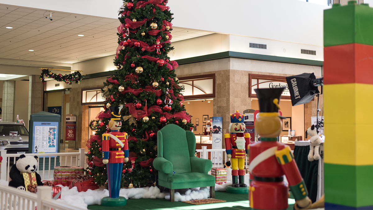 Central Mall offers portraits with Santa Claus for purchase. You can find the setup at the central court, across from Dillards.