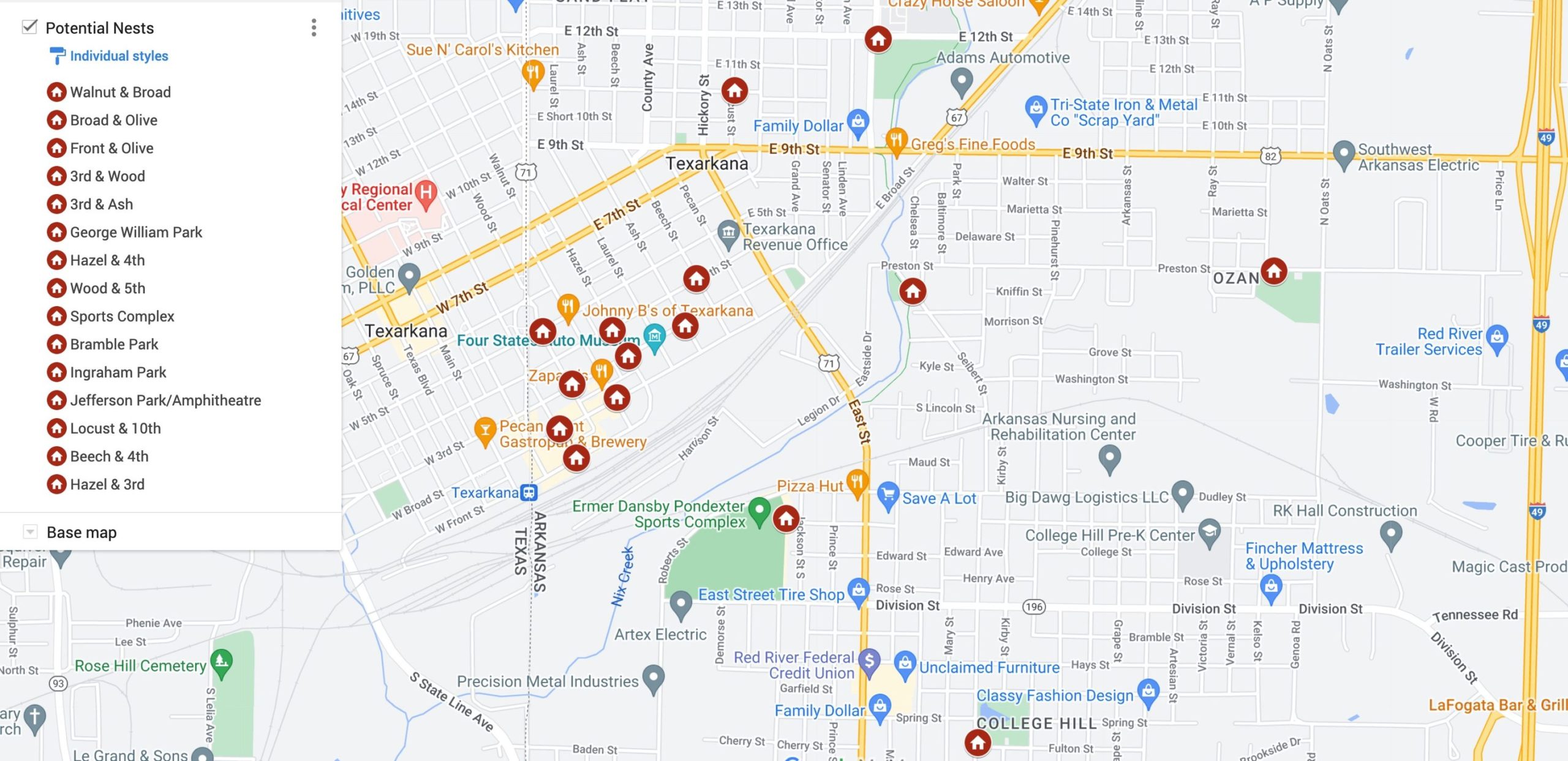 Below is a map showing potential scooter locations in Texarkana, Arkansas.