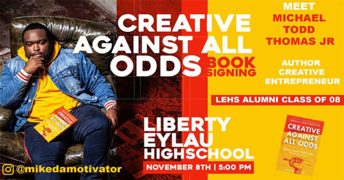 Come meet LEHS Alum Michael Todd Thomas Jr. at a signing for his book. “Creative Against All Odds.” This event will be held in the LEHS Library on Friday, November 8 at 5:00 PM.