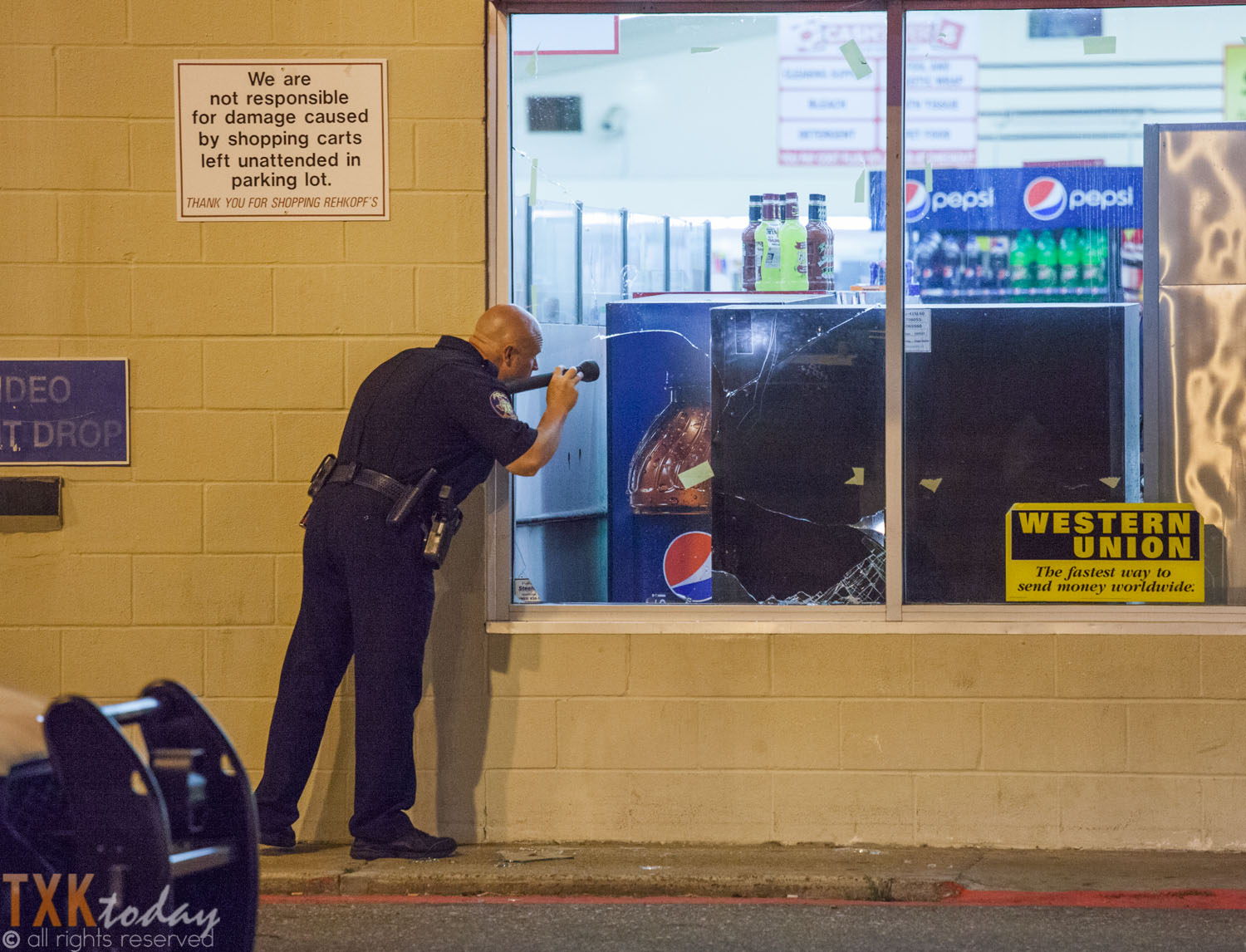 5 A.M. an employee of Cash Savers at the corner of New Boston Rd. & Summerhill waved down an officer of TTPD and informed him they had been burglarized during the night. A large section of window had been broken out to make entry. TTPD is investigating.